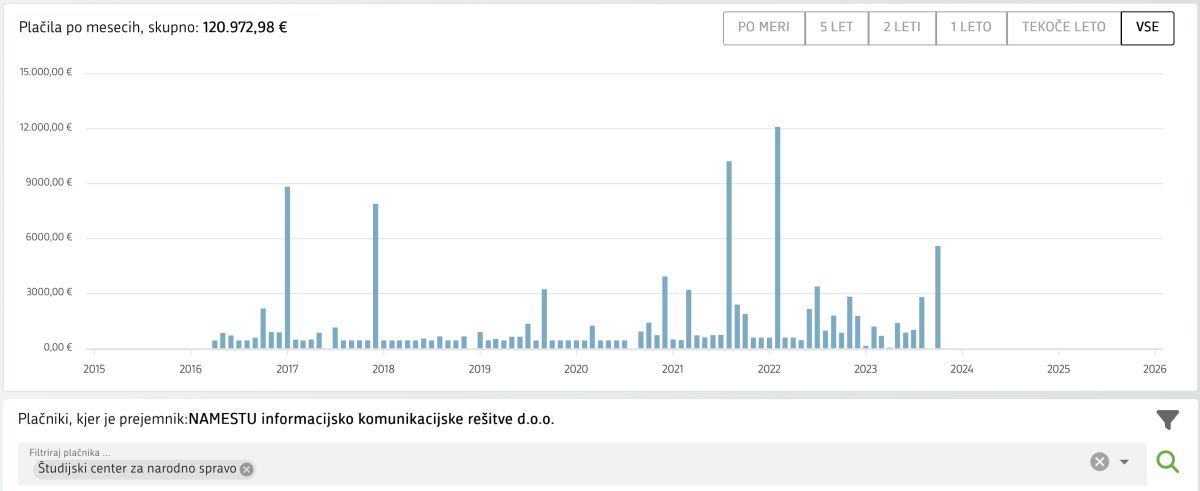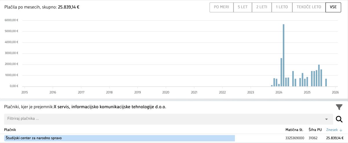 Podjetje X Servis, ki nima nobenega zaposlenega, je v slabih dveh letih od SCNR prejelo 26 tisoč evrov. V lanskem letu je imelo dobrih 140 tisoč evrov prihodkov in 17 tisoč evrov dobička.