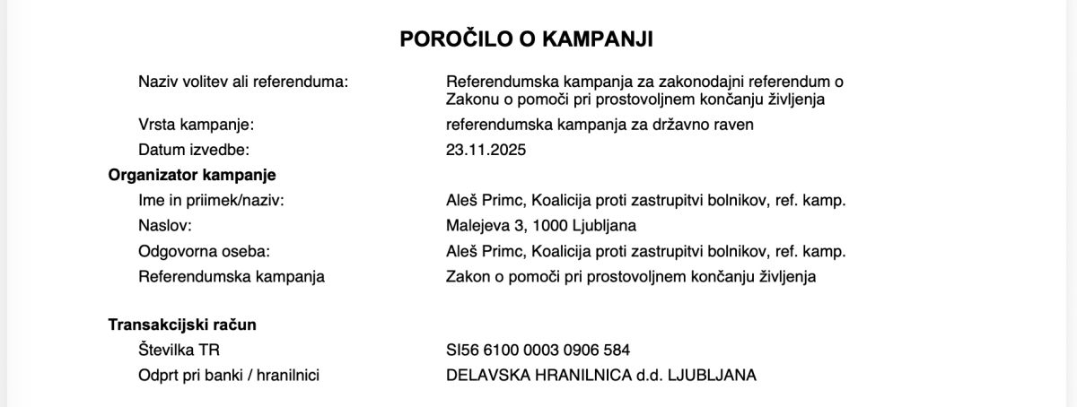 Dober mesec dni po referendumu o zakonu o prostovoljnem končanju življenja so politične stranke, društva in posamezniki, ki so se prijavili kot organizatorji kampanje, začeli oddajati poročila o tem, od koga vse so dobili denar in za kaj so ga porabili.