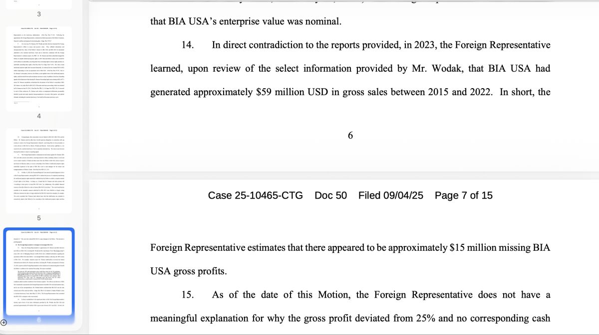 Iz dokumentov sicer izhaja, da je Wagner od sodišča zahteval popoln vpogled v poslovanje podjetja Bia Separations Inc., saj da so podatki o poslovanju, nepopolni in zavajajoče. To je šele naknadno ugotovil.