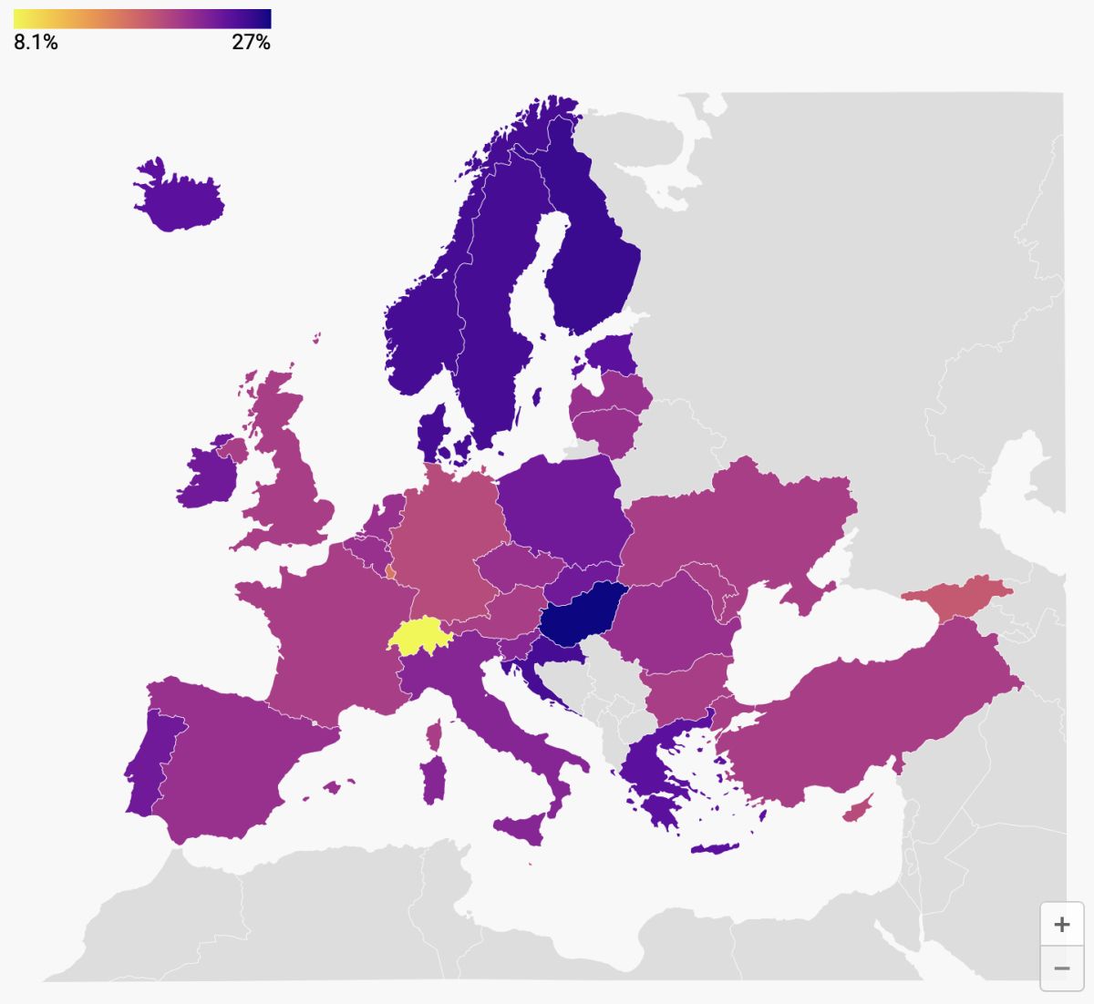 Hrvaška ima tretjo najvišjo stopnjo DDV v Evropi, takoj za Madžarsko in Finsko, Slovenija pa je pri DDV v povprečju EU (21,9 odstotka v 2025).