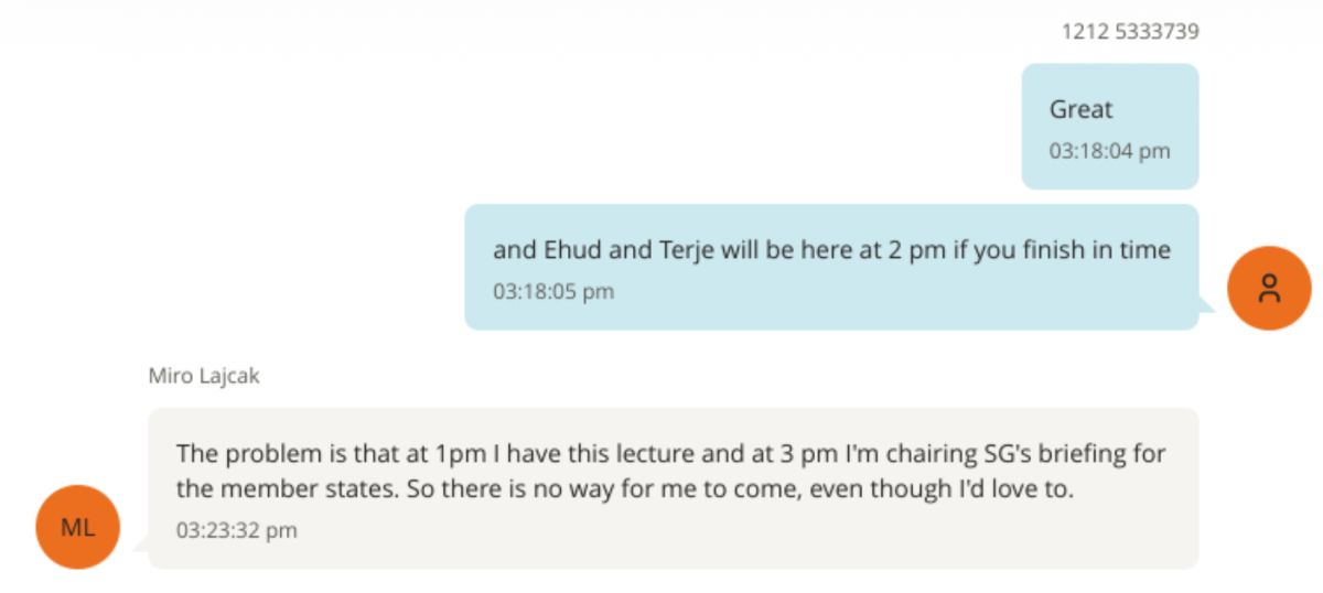 Za koga gre, iz korespondence ni mogoče izvedeti. Toda še isti dan se je Epstein prek ene od aplikacij za pošiljanje sporočil obrnil na Lajčaka, s katerim sta bila očitno v tesnih odnosih.