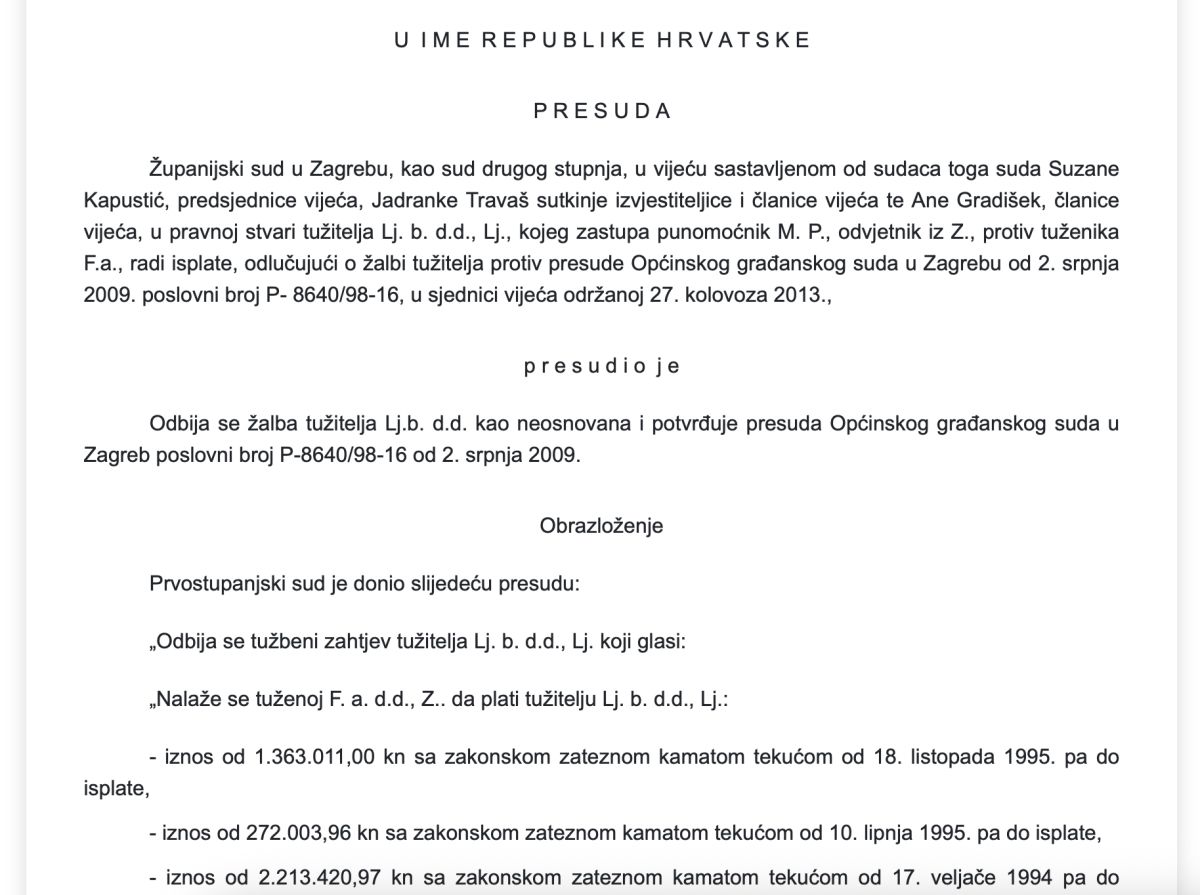 Vsa hrvaška sodišča so tožbeni zahtevek zavrnila