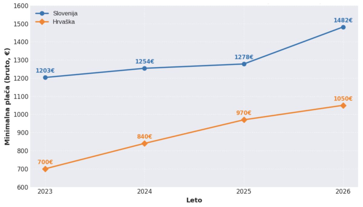 Rast minimalne plače v Sloveniji in na Hrvaškem