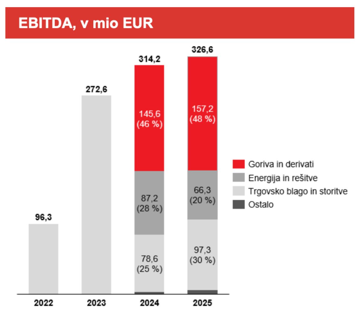 To priznavajo tudi v Petrolu. "V strukturi EBITDA po produktnih skupinah sta se v primerjavi z letom 2024 povečala deleža trgovskega blaga in storitev ter goriv in derivatov, predvsem zaradi dobrih rezultatov na trgih jugovzhodne Evrope in optimizacije stroškov," so zapisali. Medtem navajajo, da so pri prodaji in trgovanju z električno energijo zaostali za načrti, "kar smo sicer delno predvideli že ob pripravi poslovnega načrta".