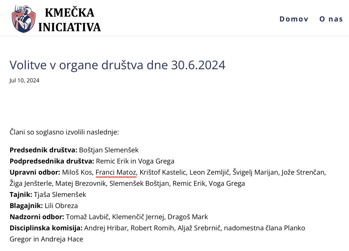 Kot je razvidno iz podatkov na spletni strani, je Matoz član upravnega odbora Združenja slovenske kmečke iniciative, ki je bilo ustanovljeno maja 2024. Takrat so se v SDS že intenzivno pripravljali na volitve v organe KGZS. Združenje je bilo ob forumu, ki ga vodi Podgoršek, eden od dveh tirov, prek katerih je SDS naskakovala zbornico, ki je od leta 2014 prejela okrog 300 milijonov evrov denarja iz javnih virov.