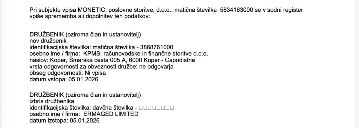 Med letoma 2020 in 2024 je tako Monetic ustvaril več kot 40 milijonov evrov čistega dobička. Ob tem je plačal le 1,5 milijona evrov davka, saj je imel zaradi odpisov iz preteklosti ogromno neizkoriščene davčne izgube.