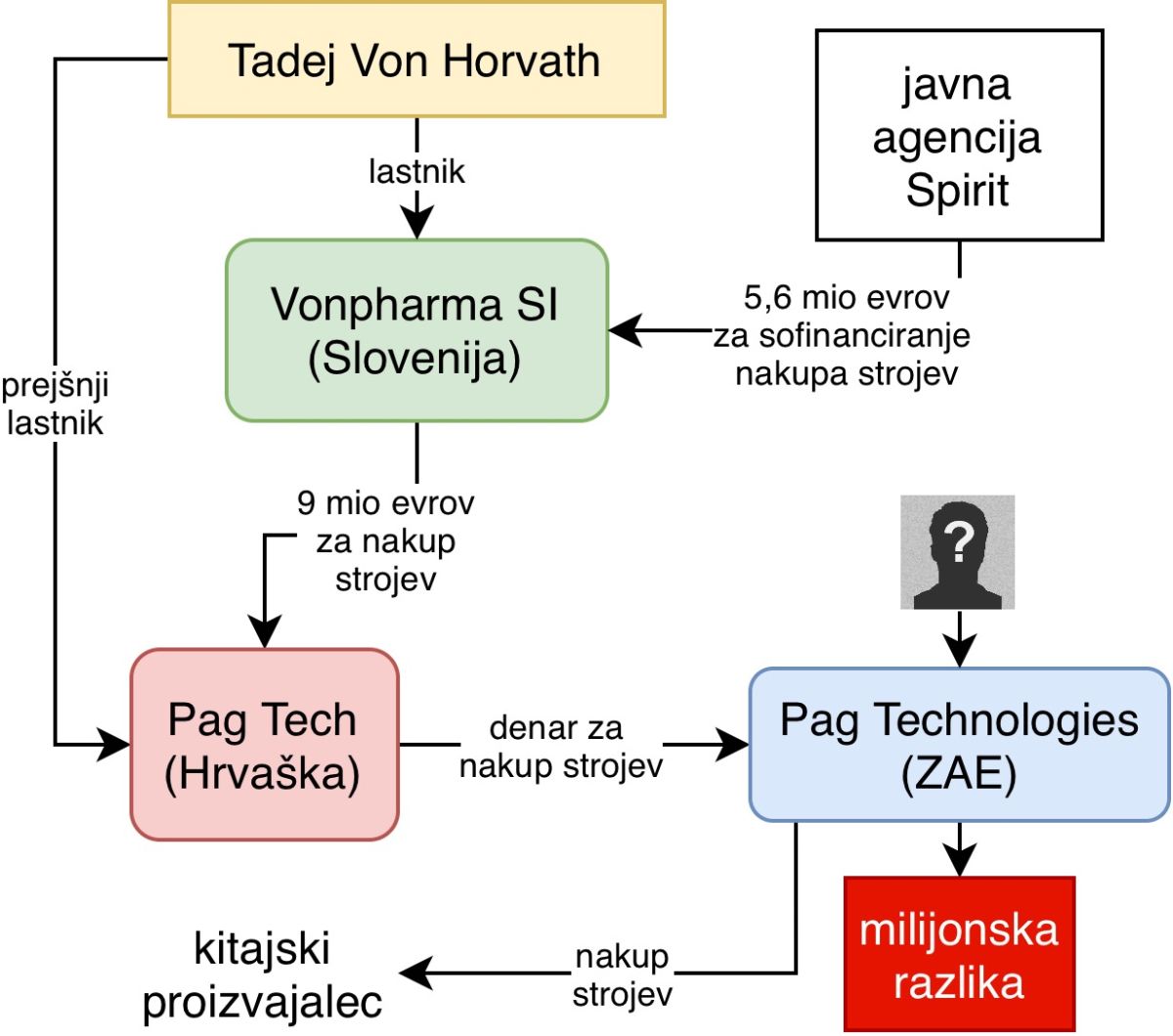Na Vona Horvatha smo se v začetku meseca obrnili z več vprašanji. Zanimalo nas je, ali je bil on lastnik oziroma upravljalec podjetja Pag Technologies iz Emiratov in ali je bilo to le posrednik, pri katerem bi ostala razlika v ceni kupljenih strojev in opreme s Kitajske. Njegova pojasnila bomo objavili, ko jih prejmemo.