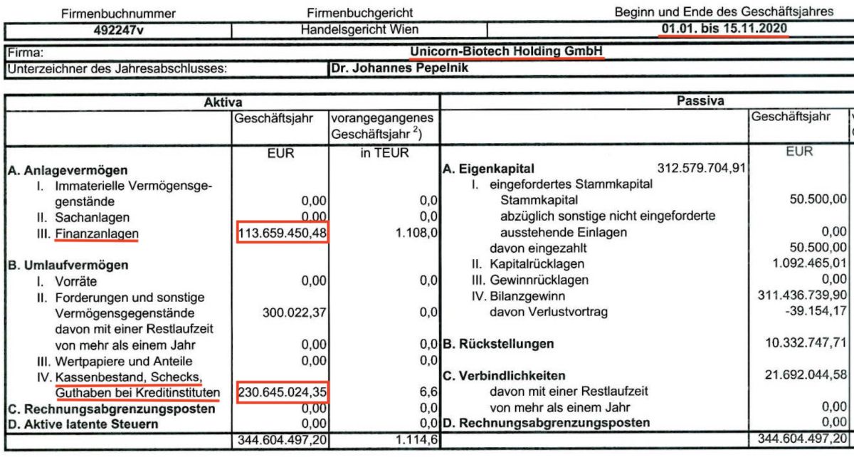Toda tolikšne kupnine Nemci niso nakazali v Slovenijo, ampak v Avstrijo. Natančneje, na bančni račun avstrijskega podjetja Unicorn-Biotech Holding, ki je v lasti dunajske odvetniške družbe Pepelnik & Karl, registrirano pa je na njenem naslovu.