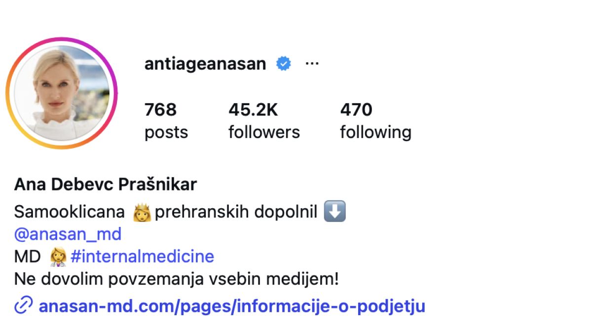 Kljub temu je šlo Ani Debevc Prašnikar do sedaj v tem poslu zelo dobro. Njeno podjetje Anasan MD, ki prodaja prehranska dopolnila, je leta 2024 ustvarilo več kot dva milijona evrov prihodkov in kar 831 tisoč evrov čistega dobička. V primerjavi z letom prej je prodajo več kot podvojilo, dobiček pa skoraj potrojilo.