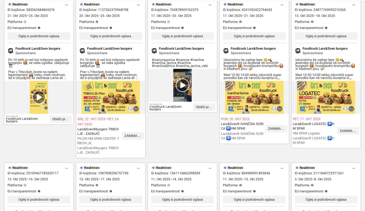 Povsem drugače se je dogajalo s profilom Foodtruck Lars & Sven. Ta je imel lani kar okoli 110 oglasov, ki so imeli običajno okrog deset tisoč ogledov, nekateri pa tudi do petkrat več.