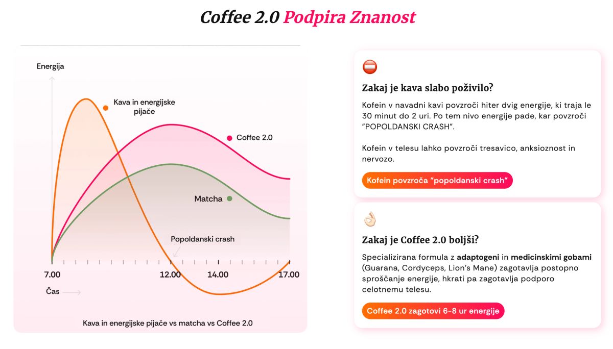 In res: kmalu zatem je podjetje Kaching, ki ima v lasti prej omenjeno agencijo WATT, začelo prodajati napitek iz gob Coffee 2.0, ki ga prav tako ponuja kot nadomestek za kavo. Solastnik in direktor tega podjetja je Jani Pravdič. Na spletni strani podjetja je bilo mogoče prebrati, da so idejo za to dobili leta 2023.