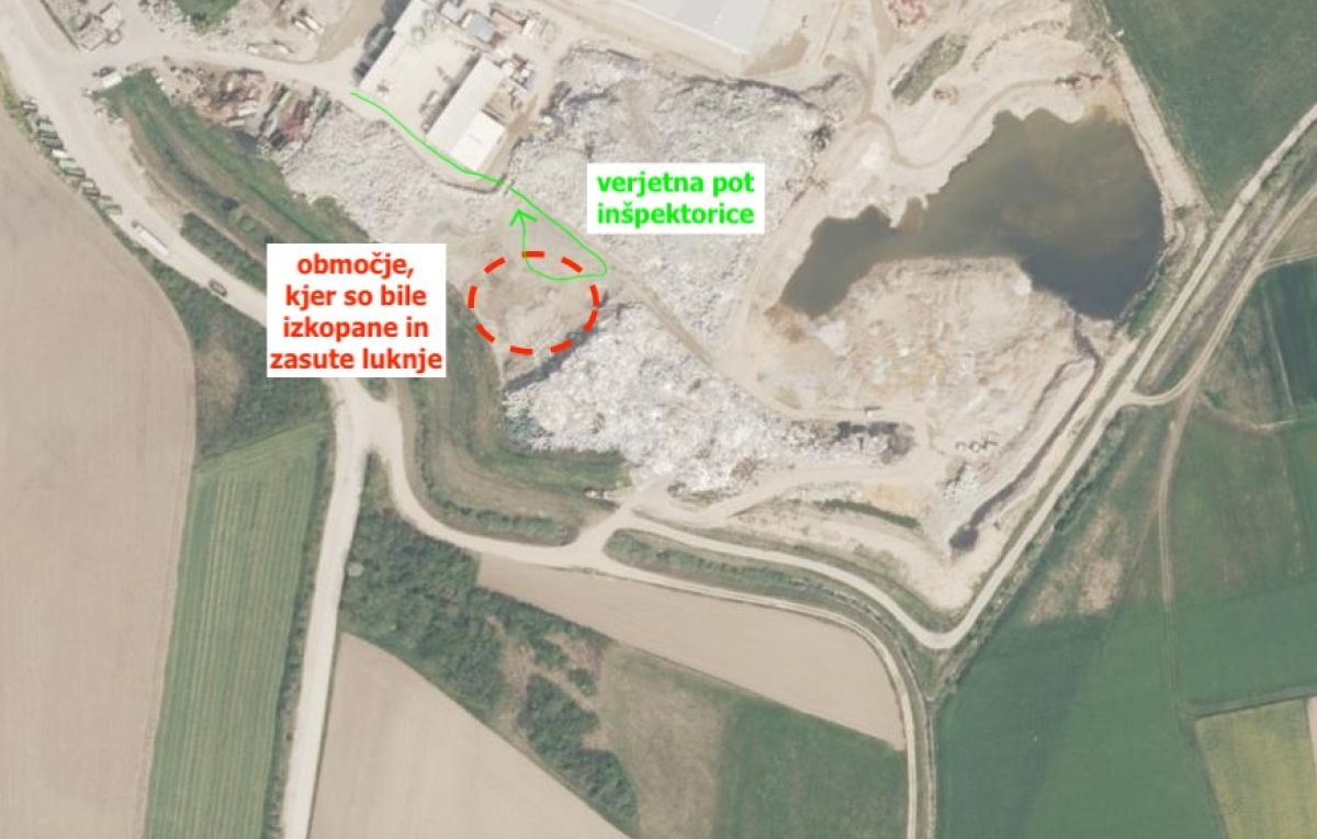 Na inšpektoratu za okolje za in energijo so namreč pred dnevi potrdili, da so tam do zdaj našli 2.900 kubičnih metrov nezakonito zakopanih mešanih komunalnih odpadkov. Površje so začeli razkopavati po pregledu z georadarjem. "Na globini od 2,5 do 4,5 metra so se začeli kazati posamezni odpadki, na globini od 3,60 do 5,50 metra pa se je pokazala okoli 2 do 2,5 metra debela plast odpadkov, kot so embalaža, tekstil, mešani komunalni odpadki, tekstilni lepilni trakovi," so pojasnili na inšpektoratu.