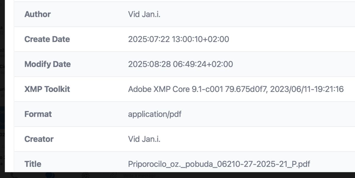 - v zadevi Črnčec-SDH je Jančič za senat pripravil priporočila, kar potrjuje tudi dokument, ki smo ga našli na spletni strani KPK. Julija letos ga je ustvaril Jančič, digitalno pa podpisal Šumi.