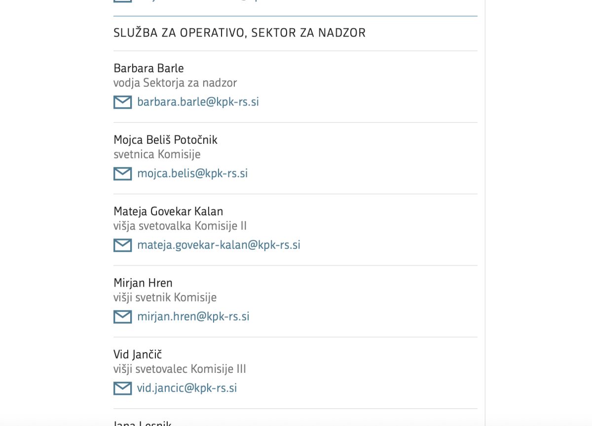 Kakšne so torej sploh pristojnosti tima, ki ga vodi Jančič? "Delo v različnih timih je vzpostavljeno v okviru interne razdelitve nalog znotraj posameznih notranjeorganizacijskih enot z namenom čim boljše organizacije dela. Gre za neformalno organizirane skupine, ki delujejo znotraj uradno vzpostavljenih notranjeorganizacijskih enot, katerih vodje so jasno navedene na spletni strani komisije," odgovarjajo na KPK.
