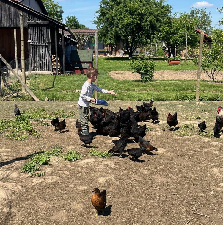 Nabavil je piščance, jih vzredil in po nekaj mesecih ponovno uresničil svojo željo. Jata 75 kokoši in petelinov se je ves dan veselo pasla na približno 14 arov veliki ograjeni travnati površini, le ko je bil čas za spanje, so jih zaprli v hlev.